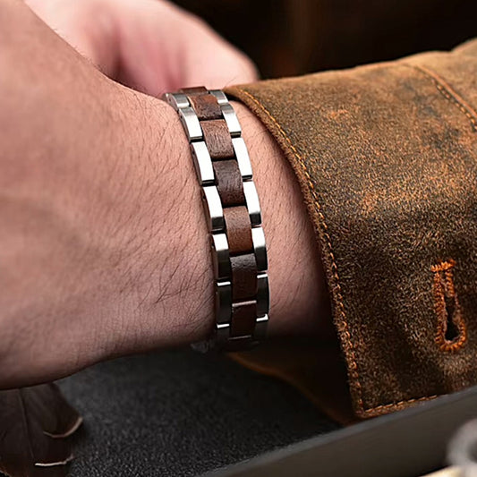 • Holzwerk ARENDSEE dunkelgrau-braunes Magnet Armband aus Walnussholz und Edelstahl mit Gliederkonstruktion Schräglage