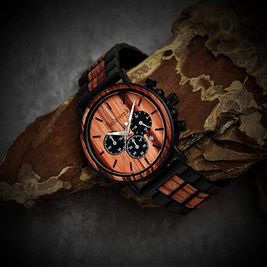 Holzwerk men's watch wooden chronograph with date in black and blue