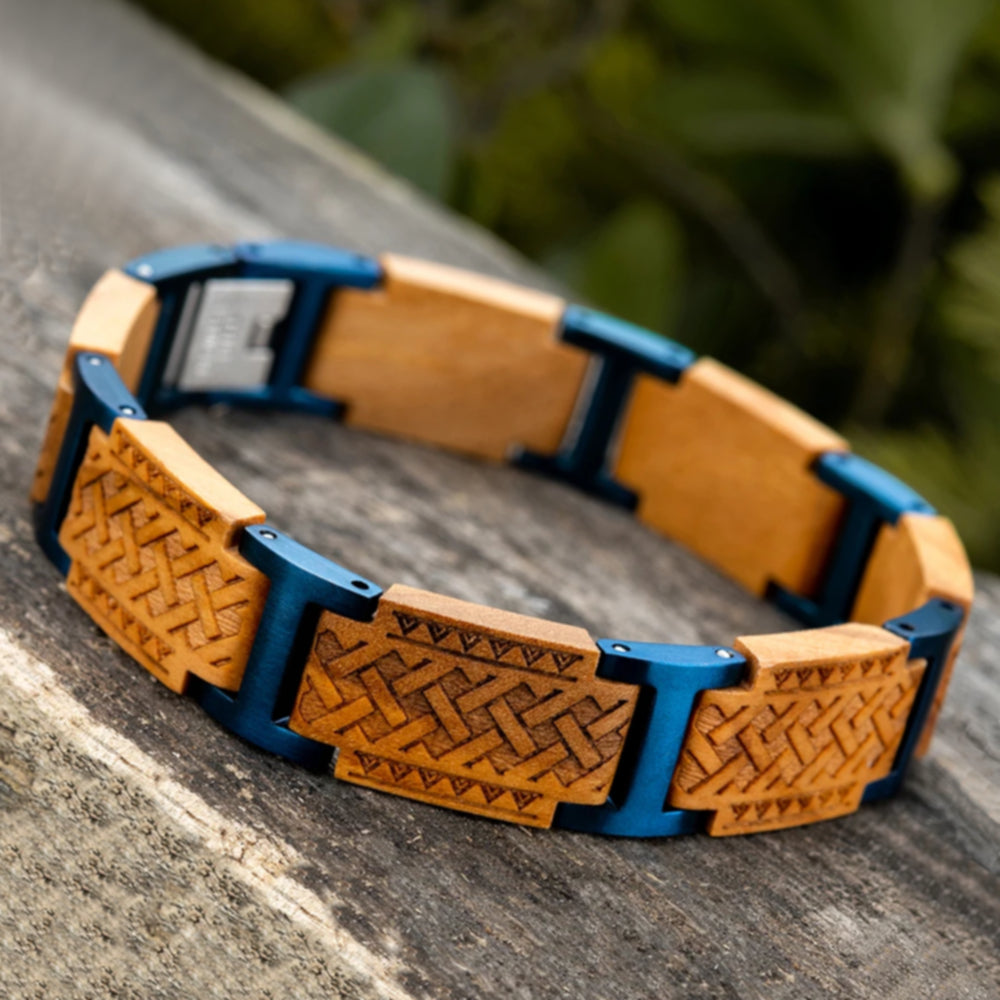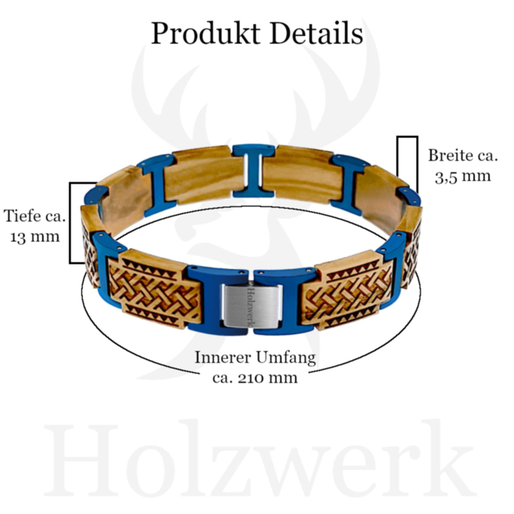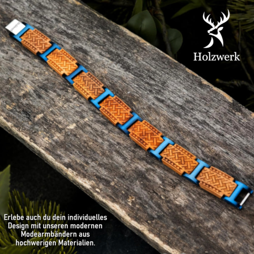Natürliches Holz und Edelstahl vereint durch besondere, aus dem Uhrenbereich inspirierte, Gliederkonstruktion. Genieße die einmalige Optik und Haptik von Holz in Kombination mit feinstem Edelstahl und lass dich vom Tragegefühl begeistern. Durch unsere besonderen Konstruktionen aus hochwertigen Materialien trägst du mit deinem Holzwerk Armband ein echtes Unikat am Armgelenk.