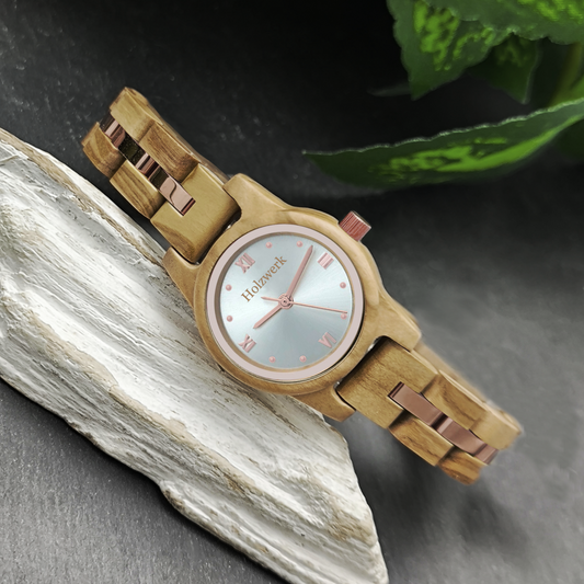 Montre femme en bois Holzwerk, petite montre-bracelet design en bois beige et blanc