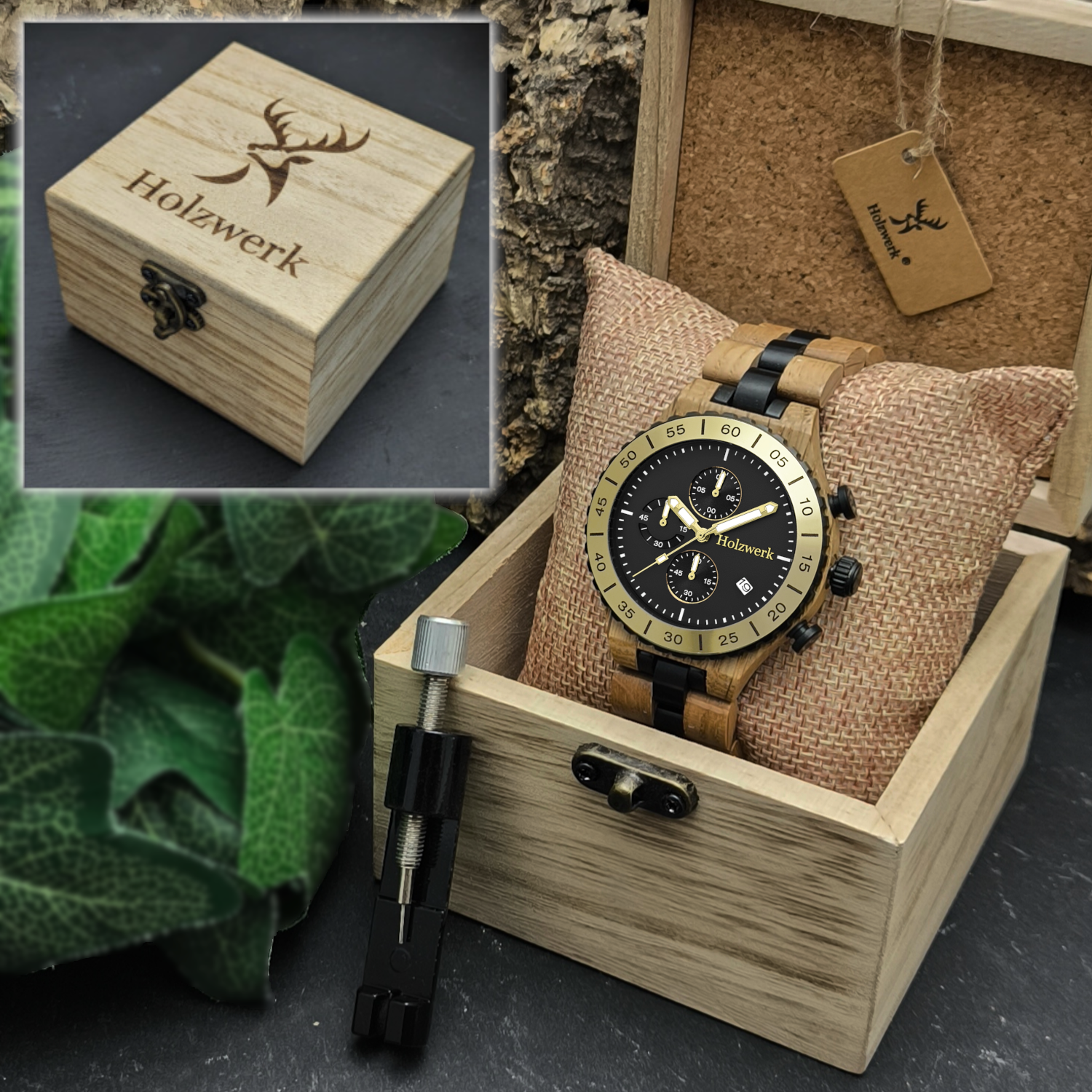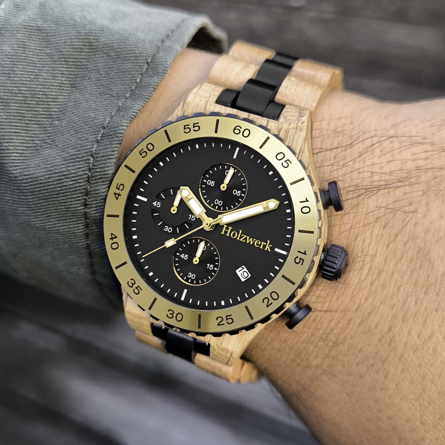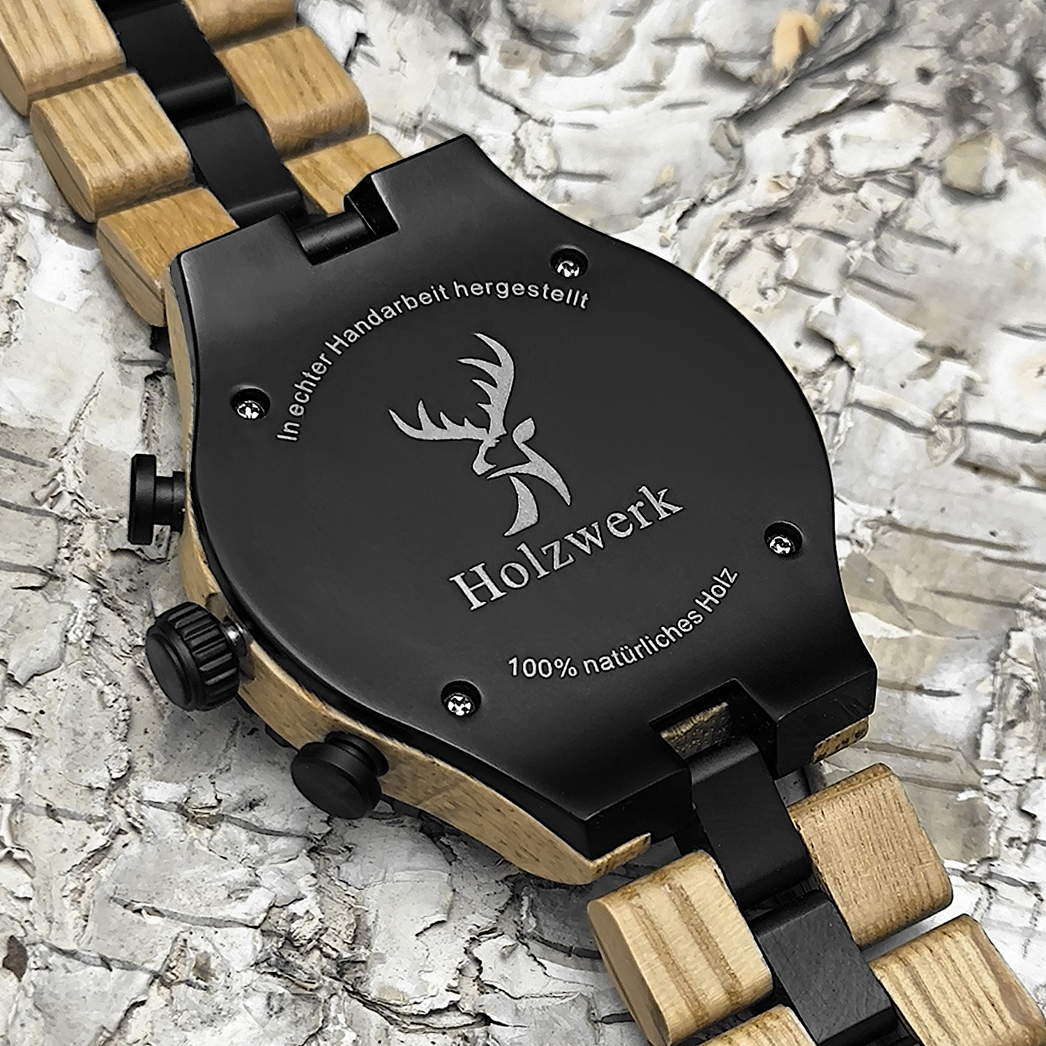 - Armbandmaterial: Holz mit Edelstahlelementen