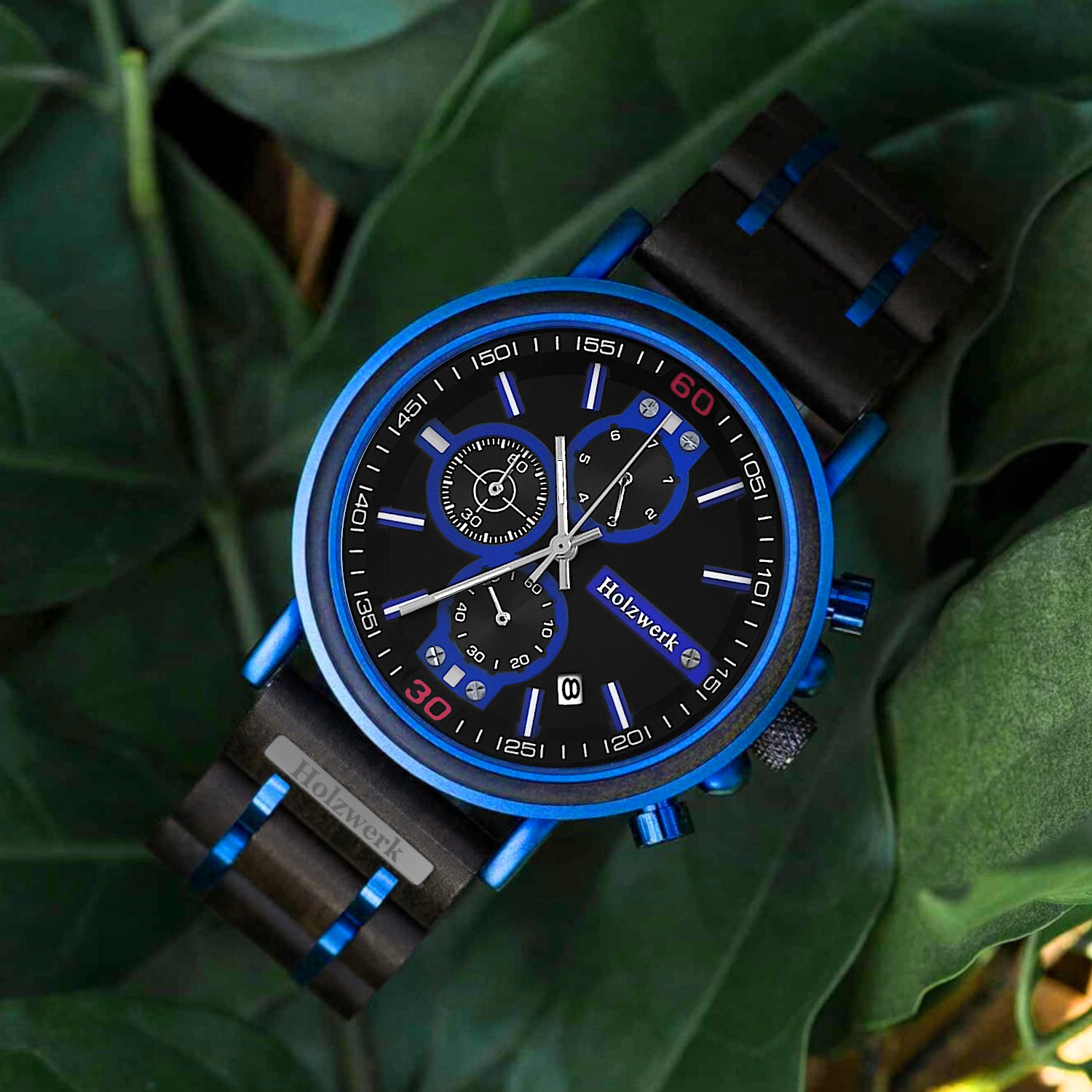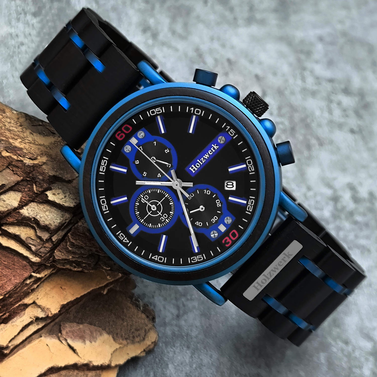 - Matériau du bracelet : acier inoxydable avec éléments en bois