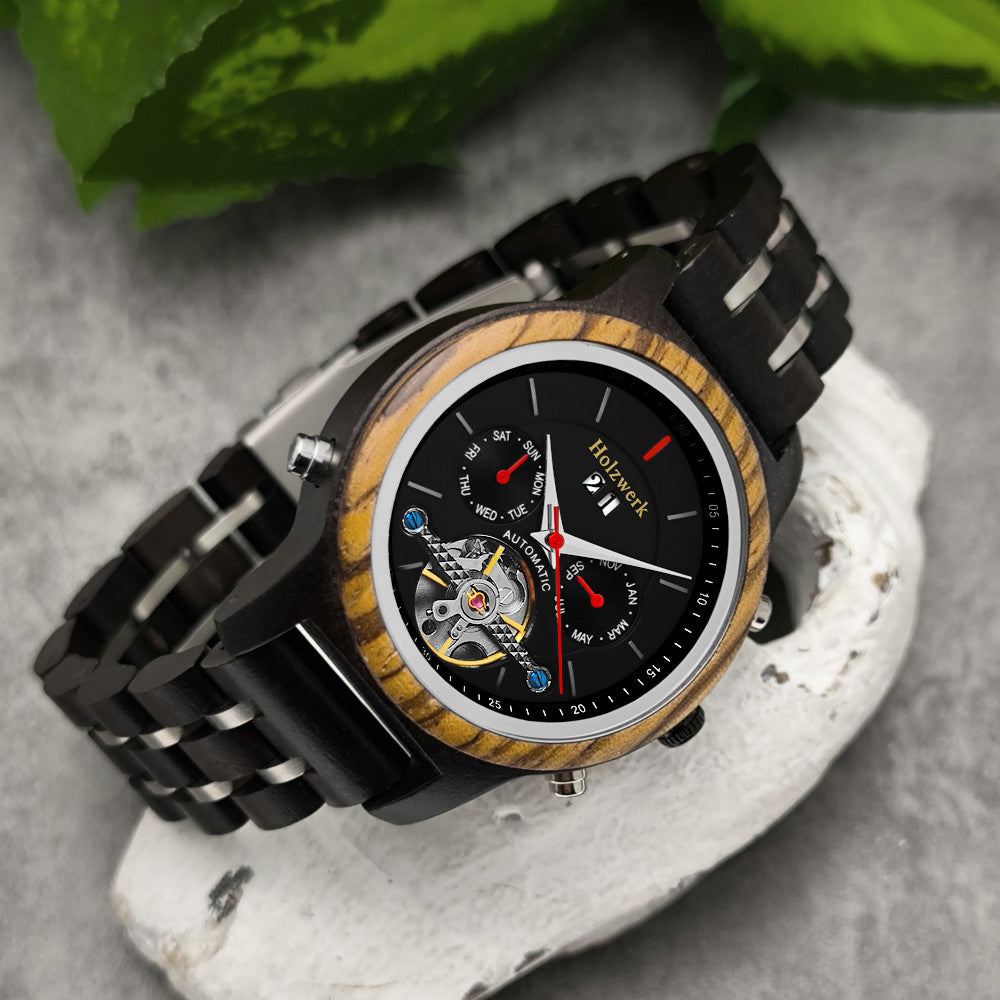 Mouvement automatique (remontage manuel) - La livraison comprend un coffret de montre Holzwerk