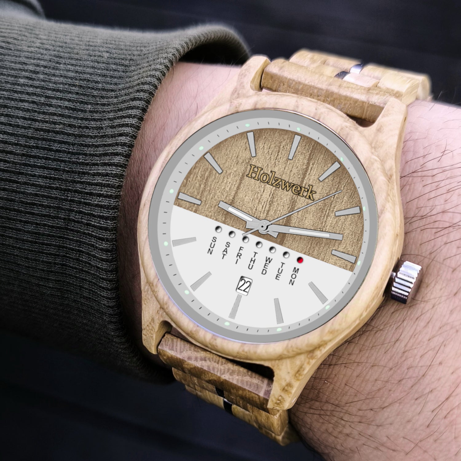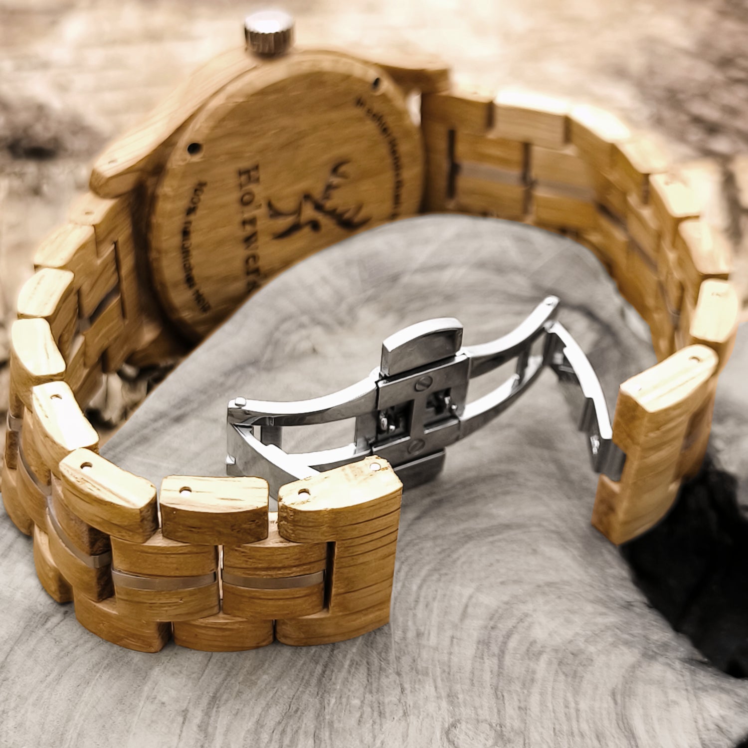 - Matériau du bracelet : bois avec éléments en acier inoxydable