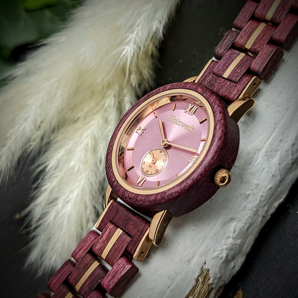 • Couleur du bracelet : rouge bordeaux/or rose