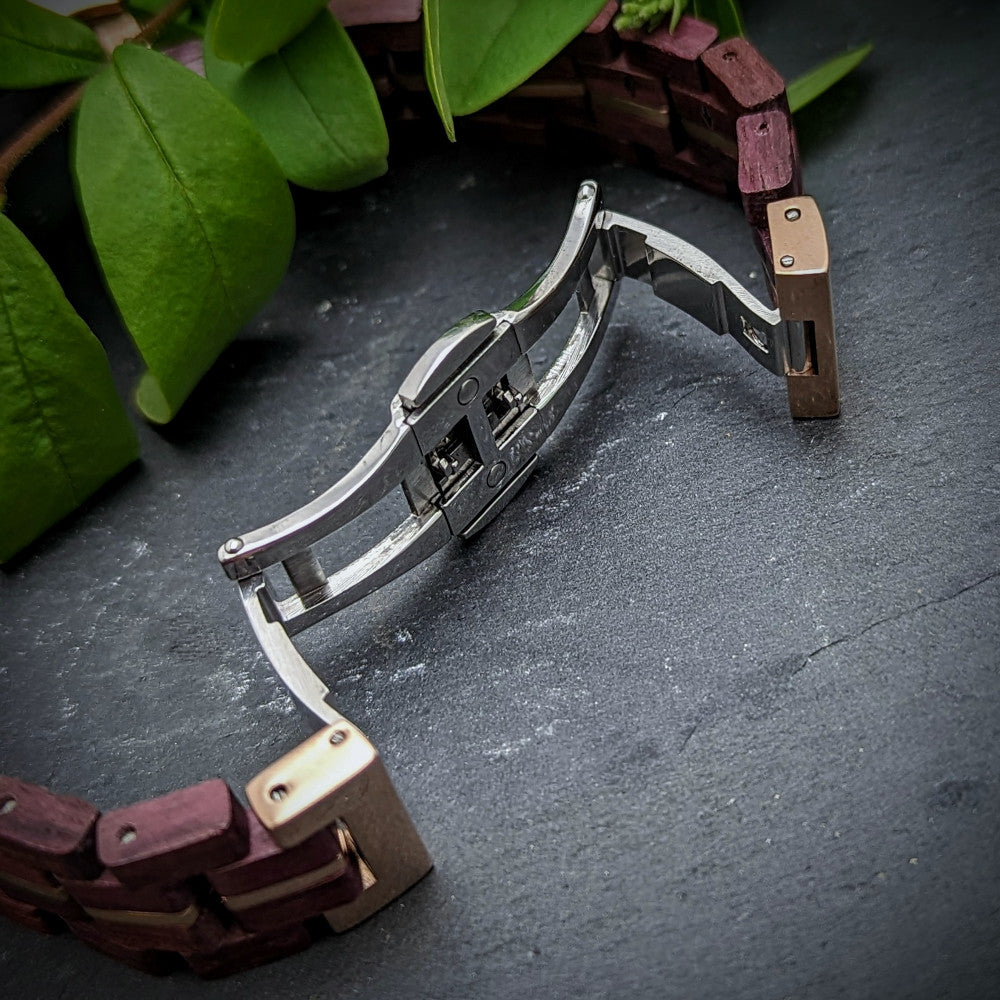 • Matériau du bracelet : bois avec éléments en acier inoxydable