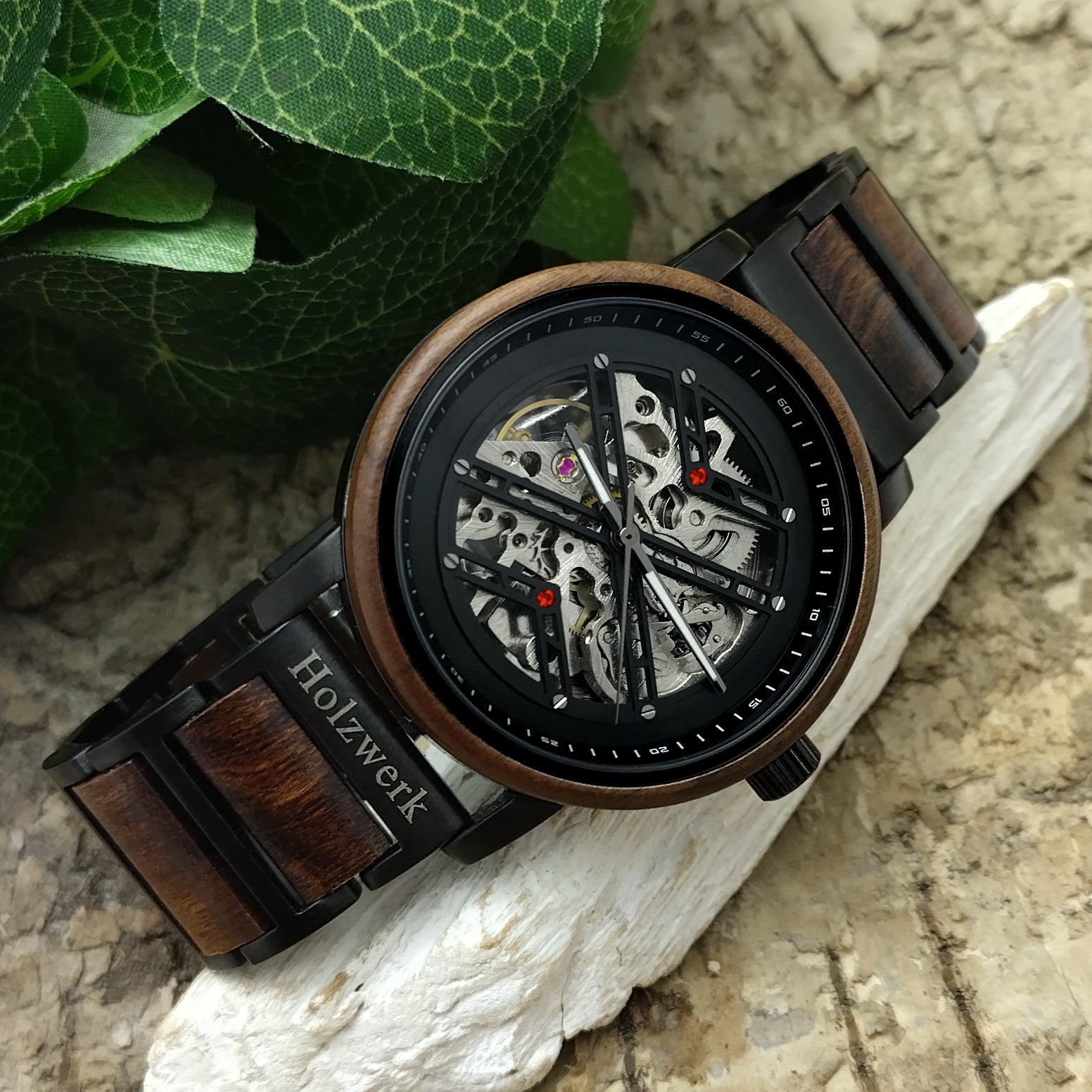 Mouvement automatique (remontage manuel) - La livraison comprend un coffret de montre Holzwerk