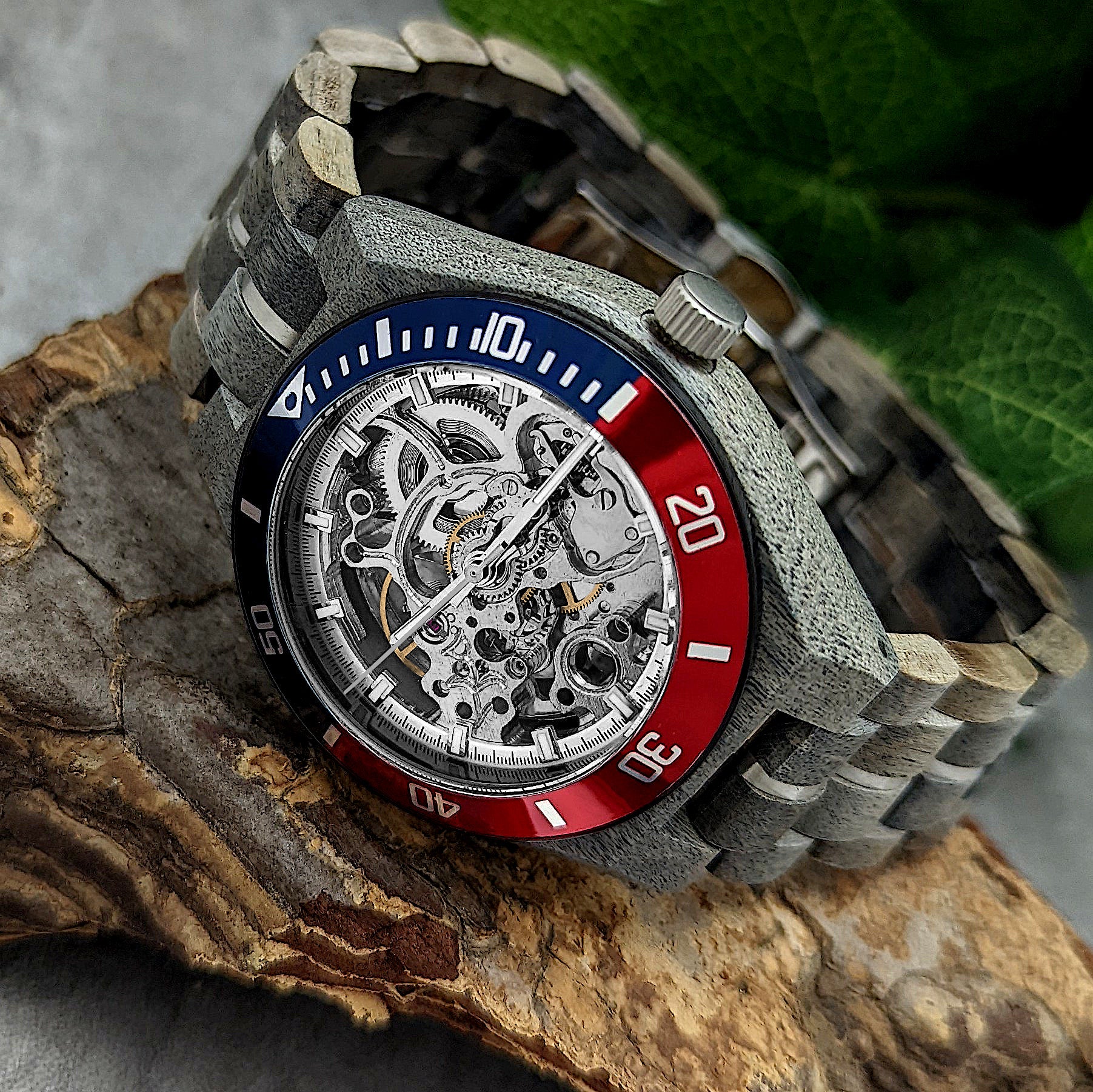 - Matériau du bracelet : bois avec éléments en acier inoxydable