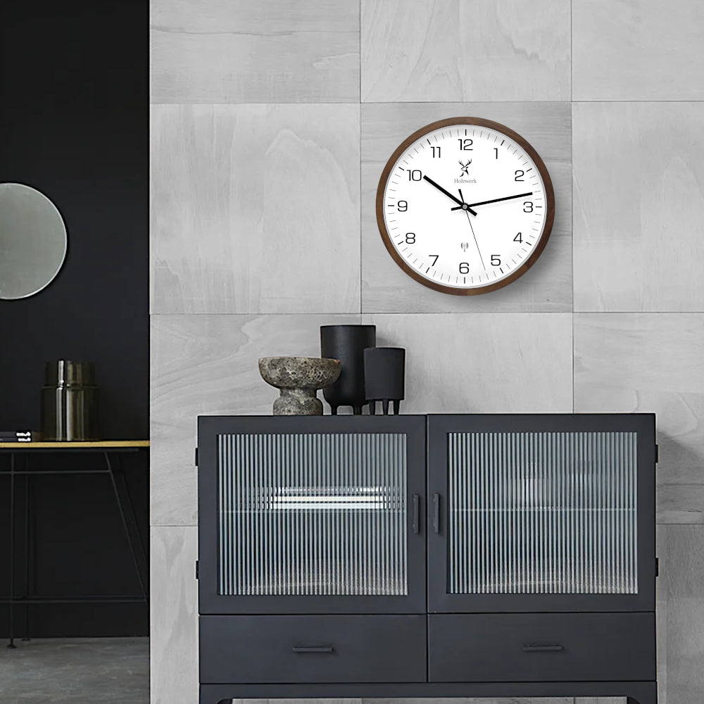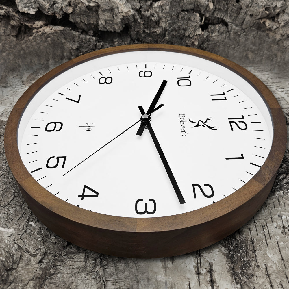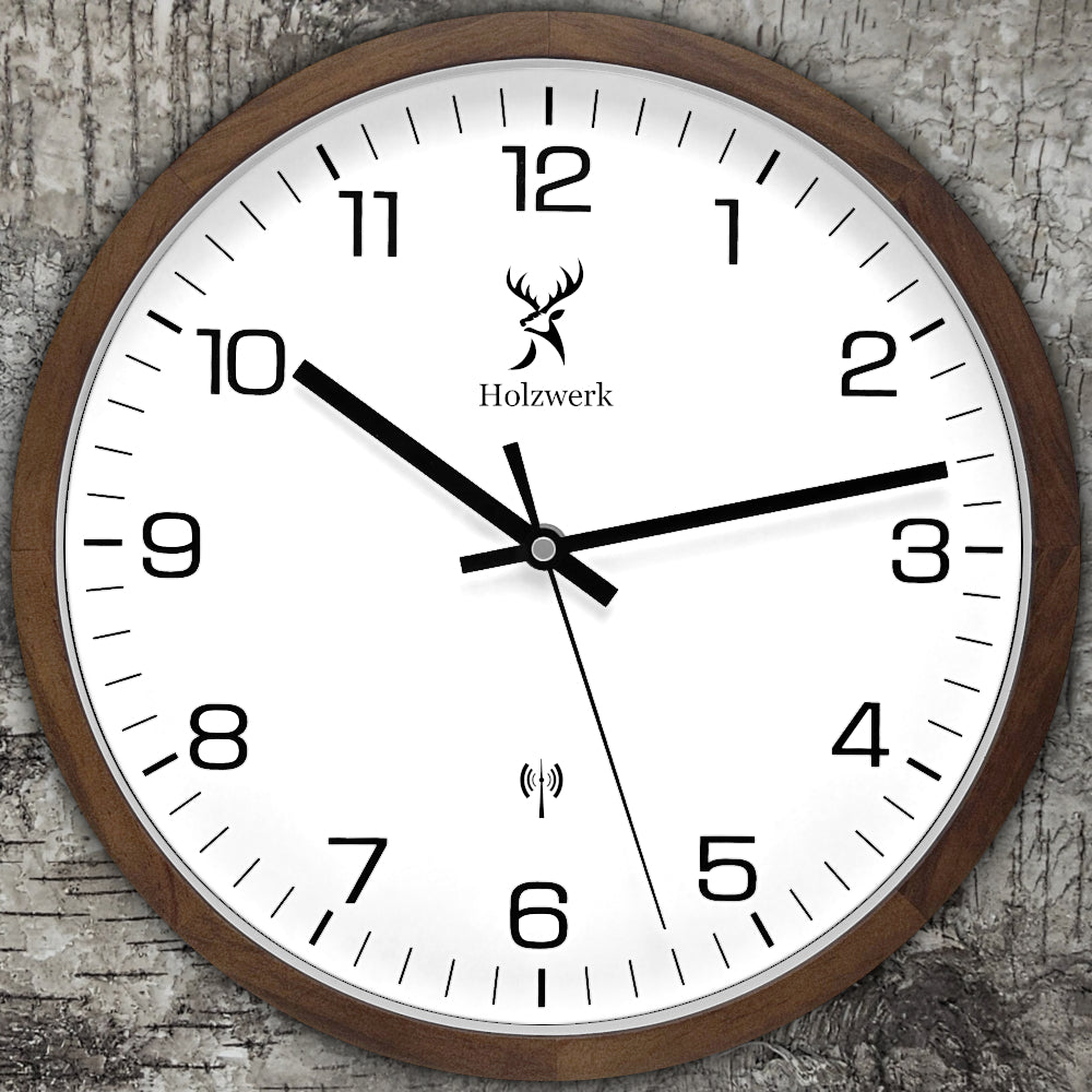 Les horloges murales Holzwerk contiennent un mécanisme d'horlogerie pratiquement silencieux ! L'horloge murale est alimentée par une pile LR6.R6P / 1,5 V AA, qui n'est pas incluse.