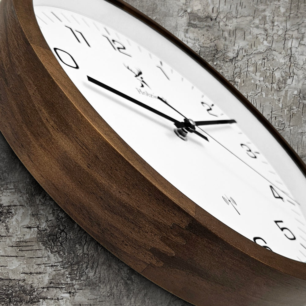 REMARQUE : En raison de l'utilisation de bois véritable, chaque horloge murale est absolument unique en raison du grain et des dégradés de couleurs légèrement différents.