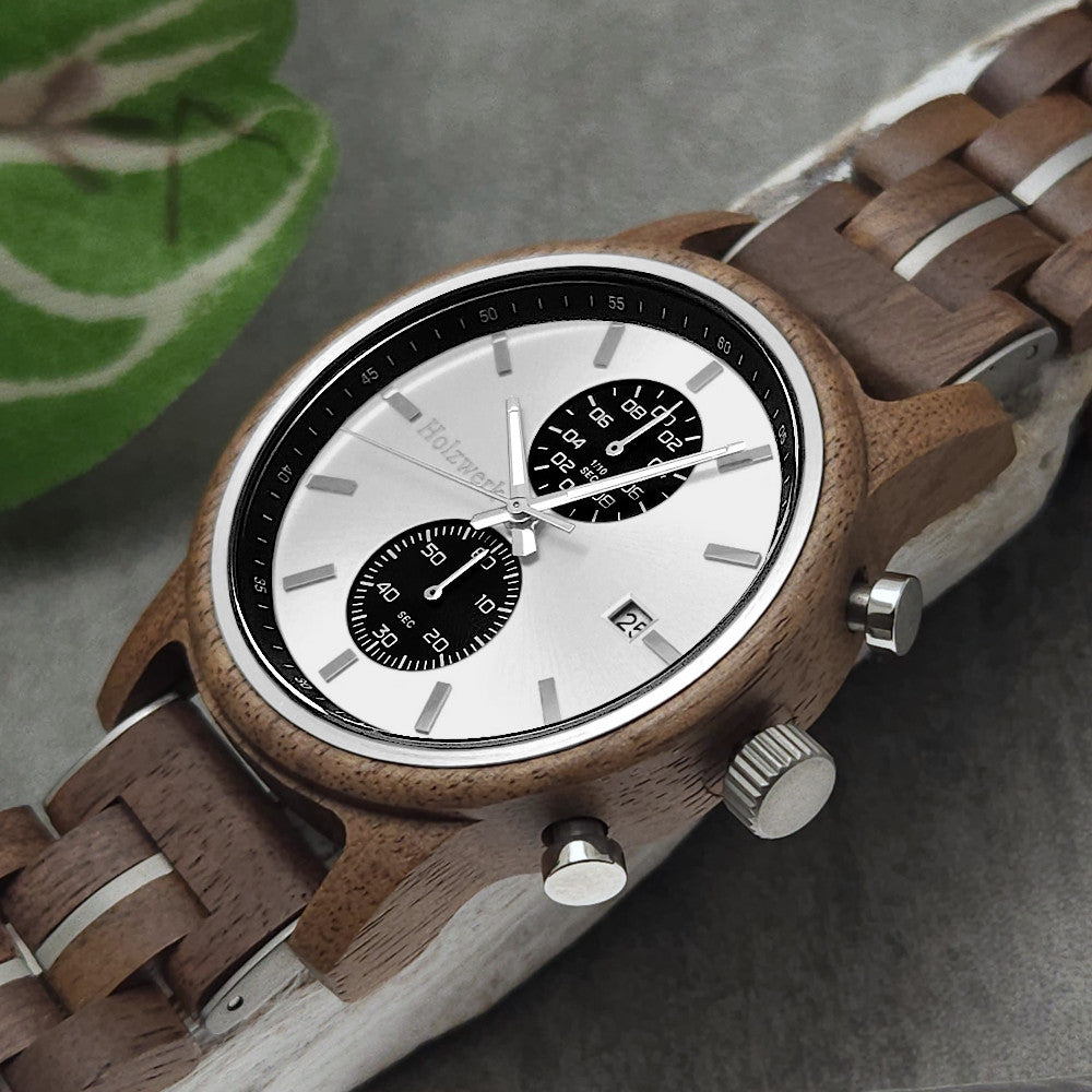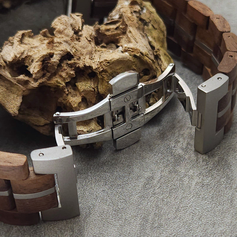 - Matériau du bracelet : bois avec éléments en acier inoxydable