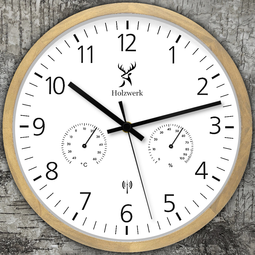 Les horloges murales Holzwerk contiennent un mécanisme d'horlogerie pratiquement silencieux ! L'horloge murale est alimentée par une pile LR6.R6P / 1,5 V AA, qui n'est pas incluse.