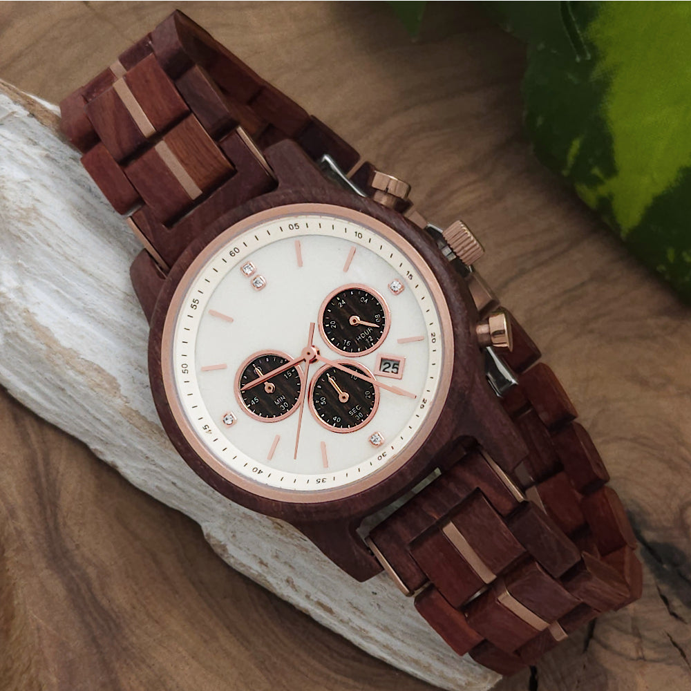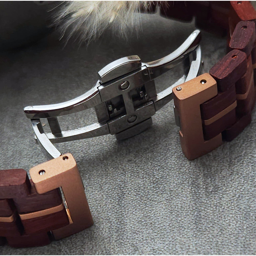 • Matériau du bracelet : bois avec éléments en acier inoxydable