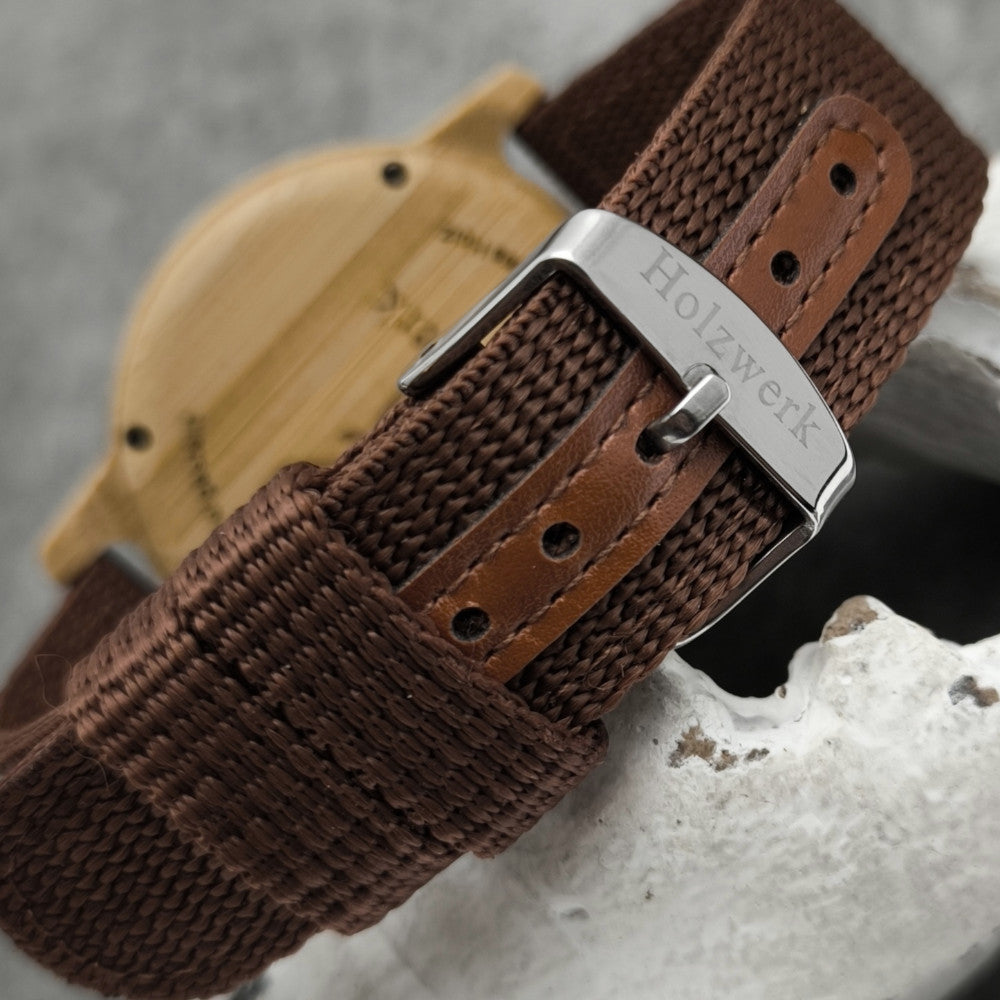 Tous les articles Holzwerk sont fabriqués à partir de matériaux soigneusement sélectionnés tels que le bois, le cuir, les textiles et l'acier inoxydable.