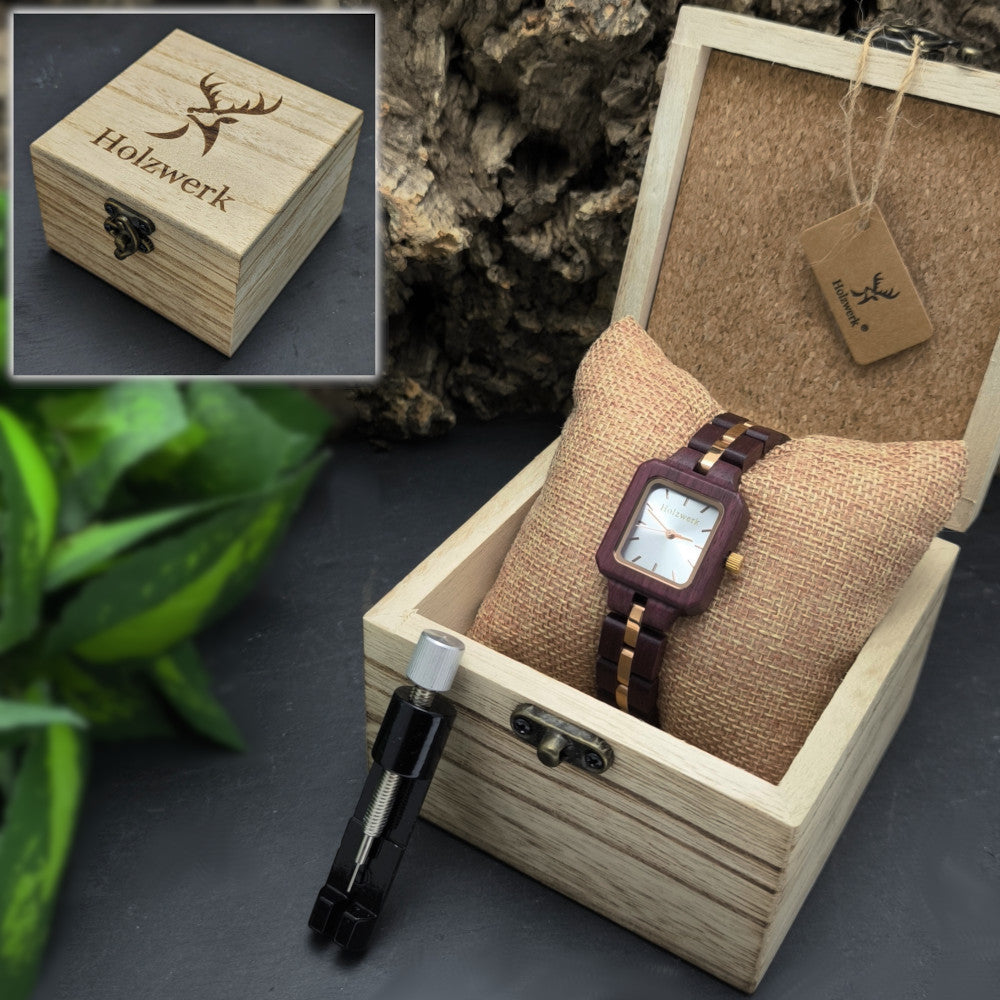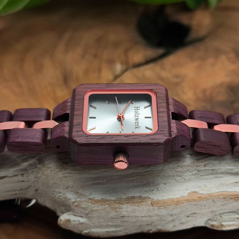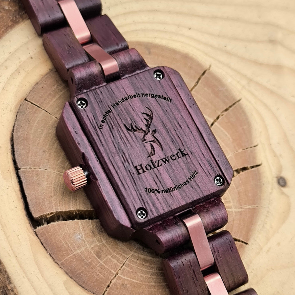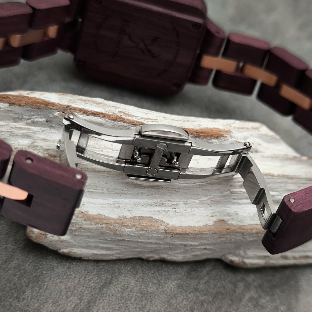 - Matériau du bracelet : bois avec éléments en acier inoxydable