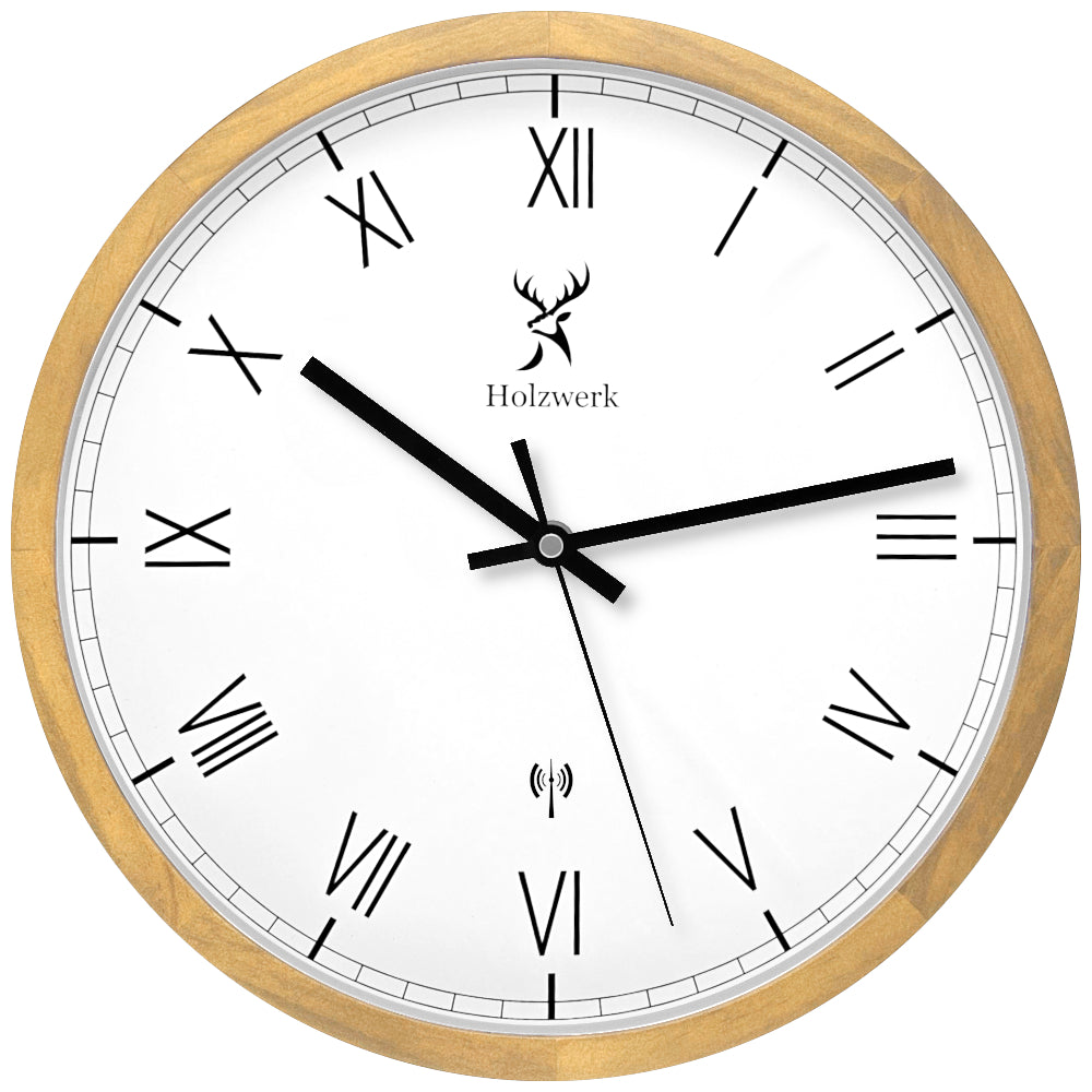 Holzwerk Wanduhren beinhalten ein nahezu lautloses Uhrwerk! Die Wanduhr wird mit einer LR6.R6P / 1,5 V AA-Batterie betrieben, welche nicht im Lieferumfang enthalten ist.