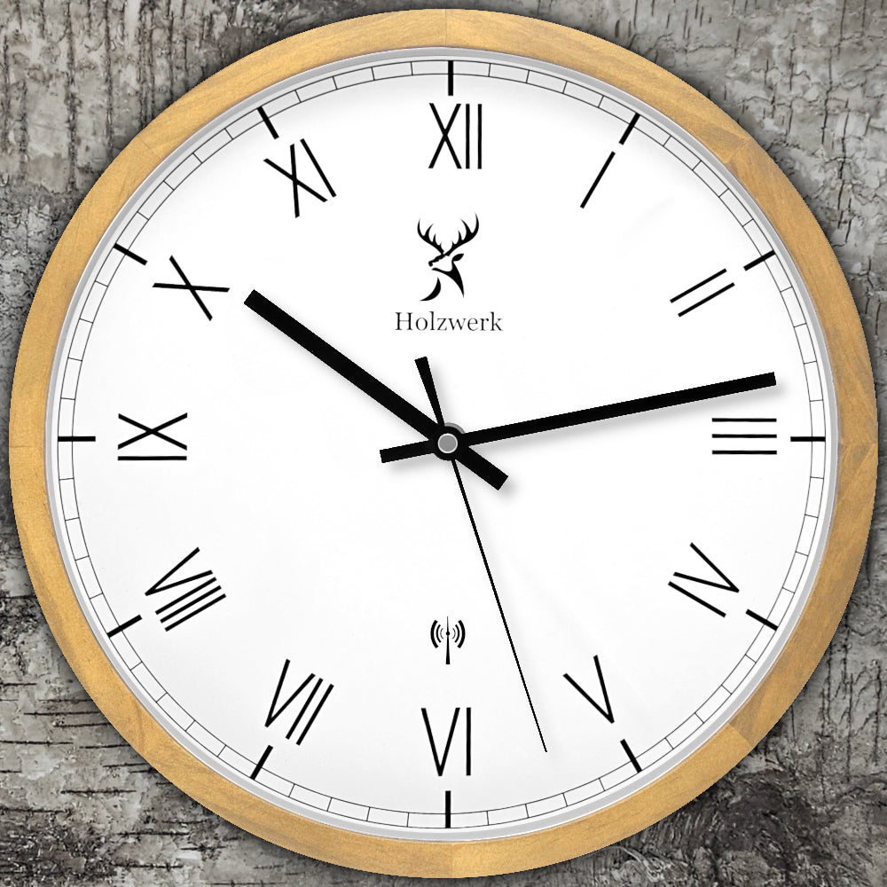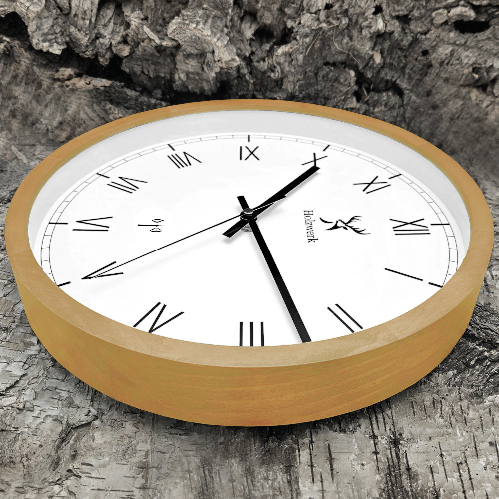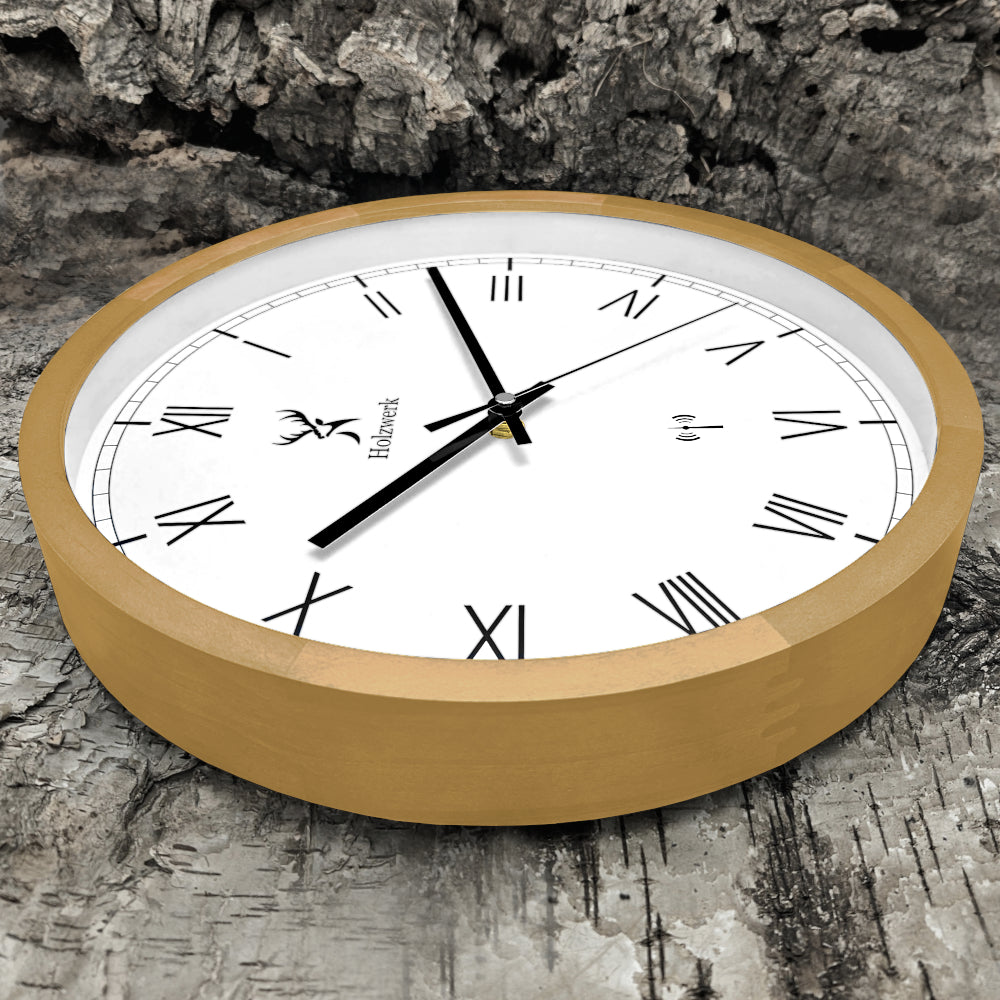 HINWEIS: Durch die Verwendung von echtem Holz ist jede Wanduhr aufgrund der Maserung und der leicht unterschiedlichen Farbverläufe ein absolutes Unikat.