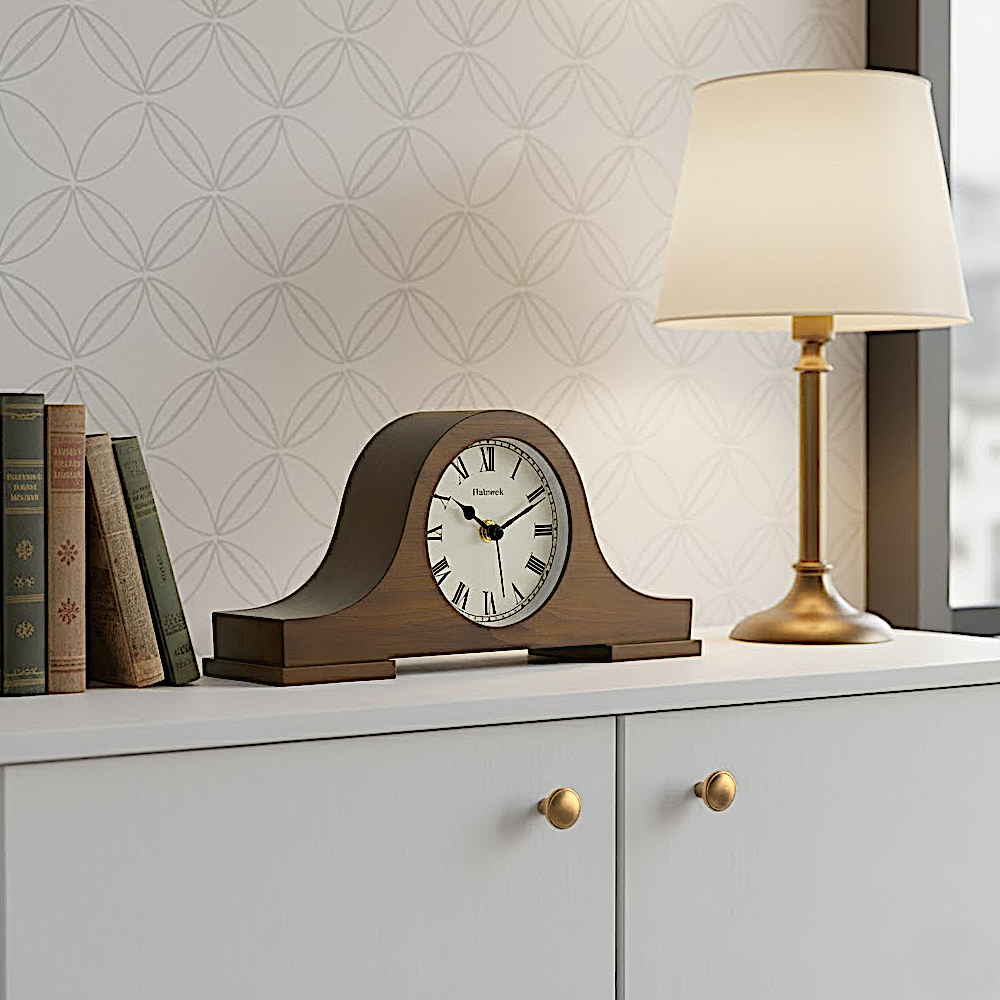 Brechen Sie aus der Monotonie des modernen Designs aus – diese Retro Tischuhr ist ein mutiges Statement für alle, die sich trauen, anders zu sein. Das robuste Holzgehäuse in tiefem Braun kombiniert mit klassischen römischen Ziffern schafft einen unverwechselbaren Look, der Aufmerksamkeit erregt.