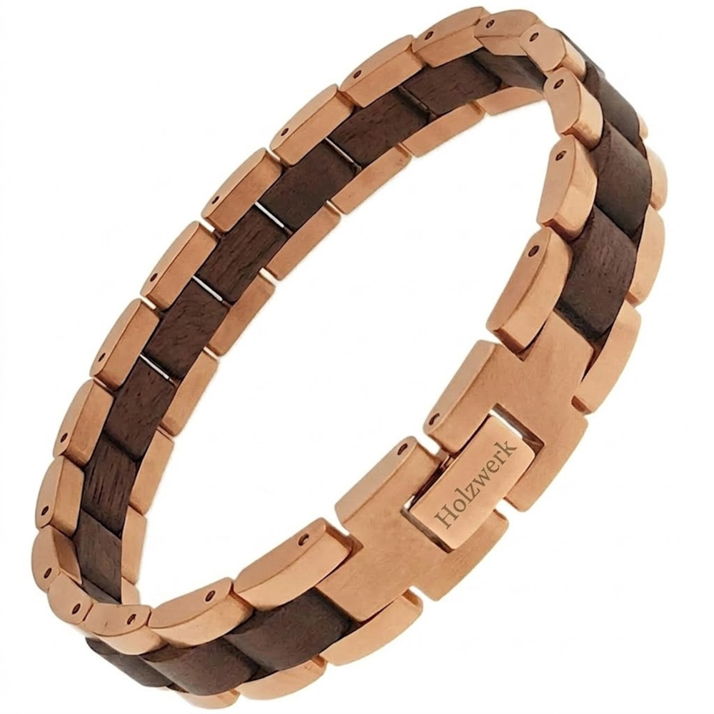 Natürliches Holz und Edelstahl vereint durch besondere, aus dem Uhrenbereich inspirierte, Gliederkonstruktion. Genieße die einmalige Optik und Haptik von Holz in Kombination mit feinstem Edelstahl und lass dich vom Tragegefühl begeistern. Durch unsere besonderen Konstruktionen aus hochwertigen Materialien trägst du mit deinem Holzwerk Armband ein echtes Unikat am Armgelenk.