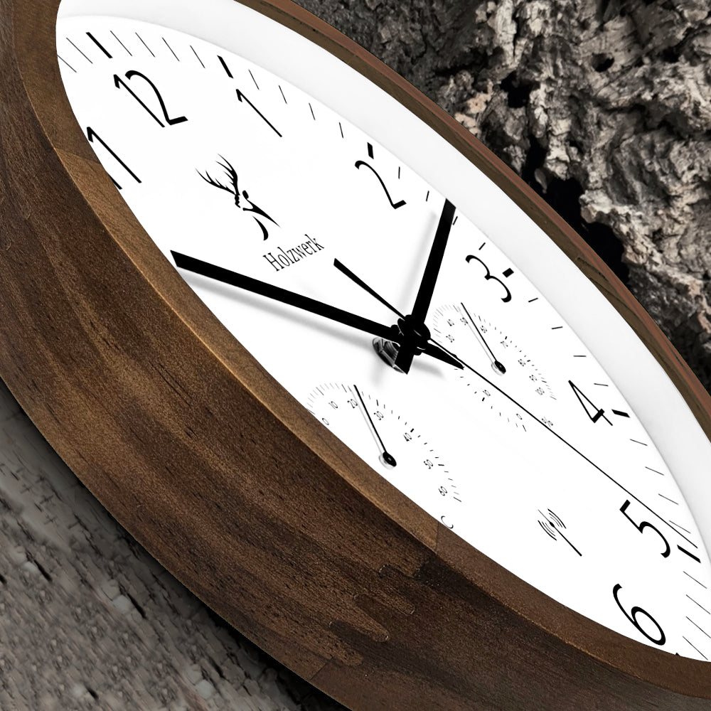 Holzwerk Wanduhren beinhalten ein nahezu lautloses Uhrwerk! Die Wanduhr wird mit einer LR6.R6P / 1,5 V AA-Batterie betrieben, welche nicht im Lieferumfang enthalten ist.