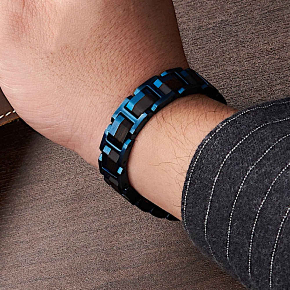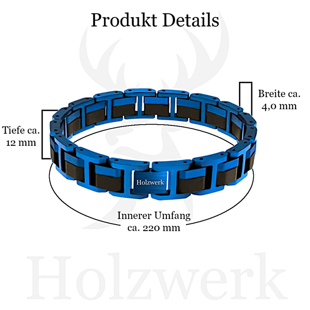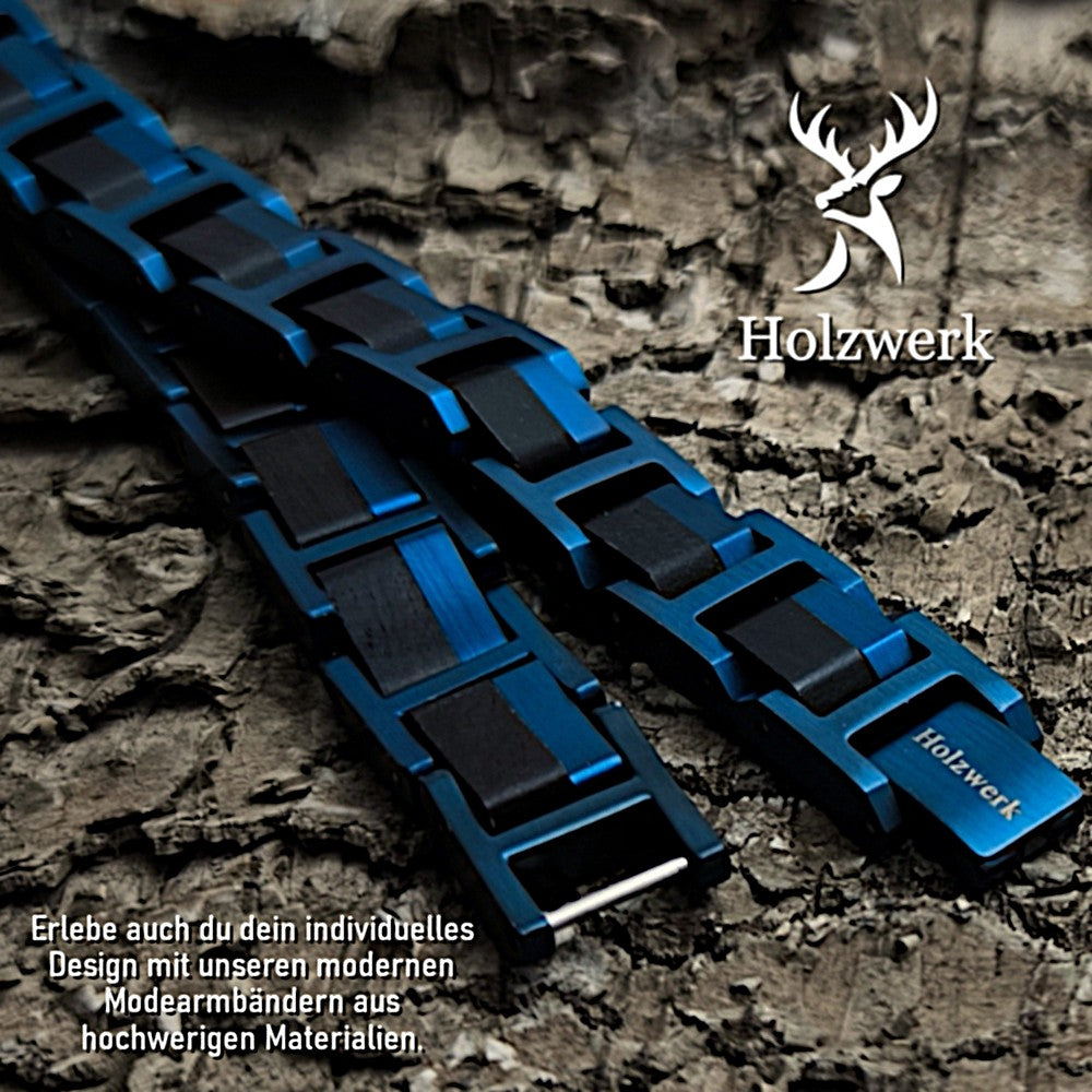 Natürliches Holz und Edelstahl vereint durch besondere, aus dem Uhrenbereich inspirierte, Gliederkonstruktion. Genieße die einmalige Optik und Haptik von Holz in Kombination mit feinstem Edelstahl und lass dich vom Tragegefühl begeistern. Durch unsere besonderen Konstruktionen aus hochwertigen Materialien trägst du mit deinem Holzwerk Armband ein echtes Unikat am Armgelenk.